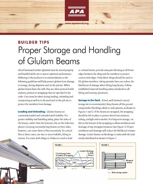 APA R540G: PROPER STORAGE AND HANDLING OF GLULAM BEAMS