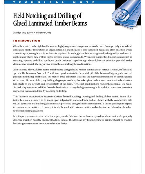 APA Technical S560: Field Notching and Drilling of Glued Laminated Timber Beams