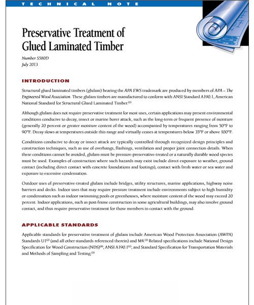 APA EWS S580D PRESERVATIVE TREATMENT OF GLUED LAMINATED TIMBER