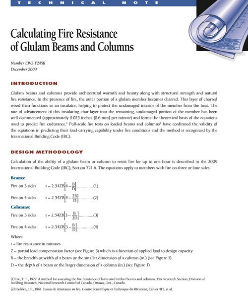 APA EWS Y245B CALCULATING FIRE RESISTANCE OF GLULAM BEAMS AND COLUMNS