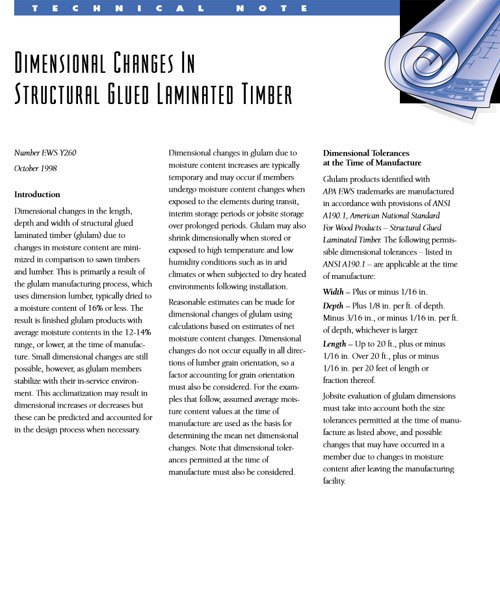 APA EWS Y260 DIMENSIONAL CHANGES IN STRUCTURAL GLUED LAMINATED TIMBER
